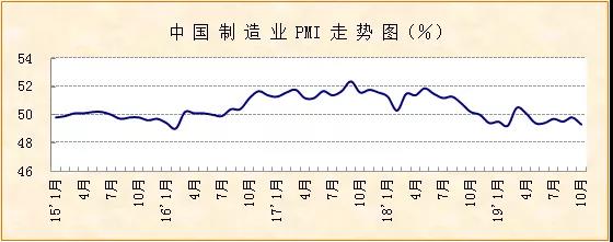 中國物流與采購聯(lián)合會、國家統(tǒng)計(jì)局服務(wù)業(yè)調(diào)查中心發(fā)布的2019年10月份中國制造業(yè)采購經(jīng)理指數(shù)(PMI)為49.3%,較上月下降0.5個百分點(diǎn),創(chuàng)今年二季度以來較低水平。分項(xiàng)指數(shù)顯示,本月市場需求降至收縮區(qū)間,企業(yè)生產(chǎn)和采購增速放緩。但經(jīng)濟(jì)結(jié)構(gòu)優(yōu)化,新動能和消費(fèi)品行業(yè)加速擴(kuò)張,就業(yè)相對穩(wěn)定。綜合來看,經(jīng)濟(jì)增速放緩,發(fā)展質(zhì)量提升。
